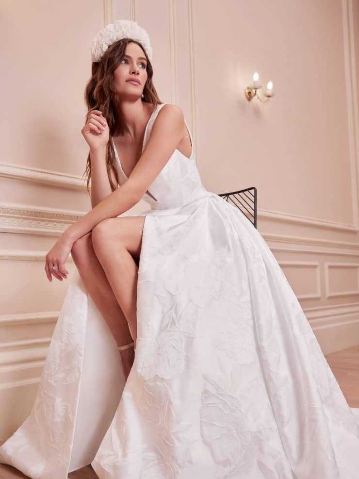 Luxurious, romantic and regal. A must try for brides on the hunt for their dream dress this year. Jacquard is known for its intricate, woven designs, which can include anything from florals and lines to geometric designs. Brocade is very similar in that it’s also woven, but it usually features ornate and raised designs and frequently uses metallic threads, think Princess Eugenie’s iconic wedding dress!
